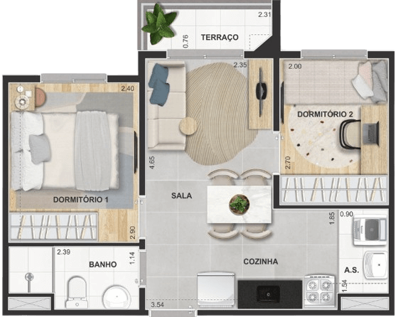 No Next Guarulhos, oferecemos apartamentos de 34m² a 38m², com layouts modernos, com opções de varanda e vaga de garagem, para que você tenha o máximo de conforto e praticidade.