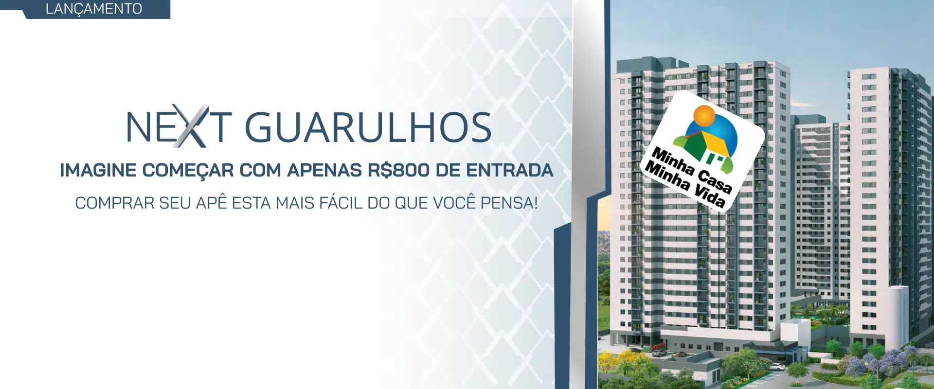 No Next Guarulhos, além de uma entrada a partir de R$800,00, você pode parcelar o valor da entrada e usar o saldo do FGTS, tornando a compra do seu imóvel ainda mais acessível.